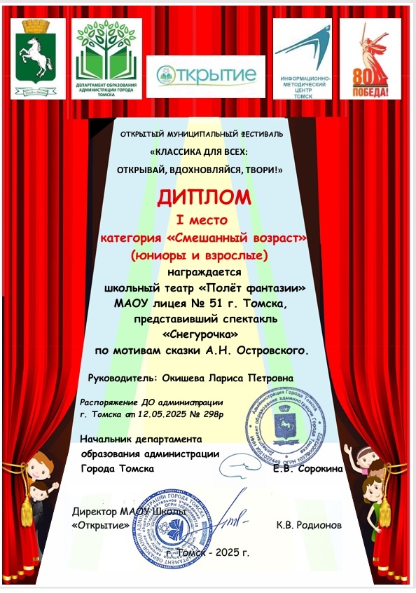 Открытый муниципальный  фестиваль школьных театров «Школа. Занавес. Премьера
