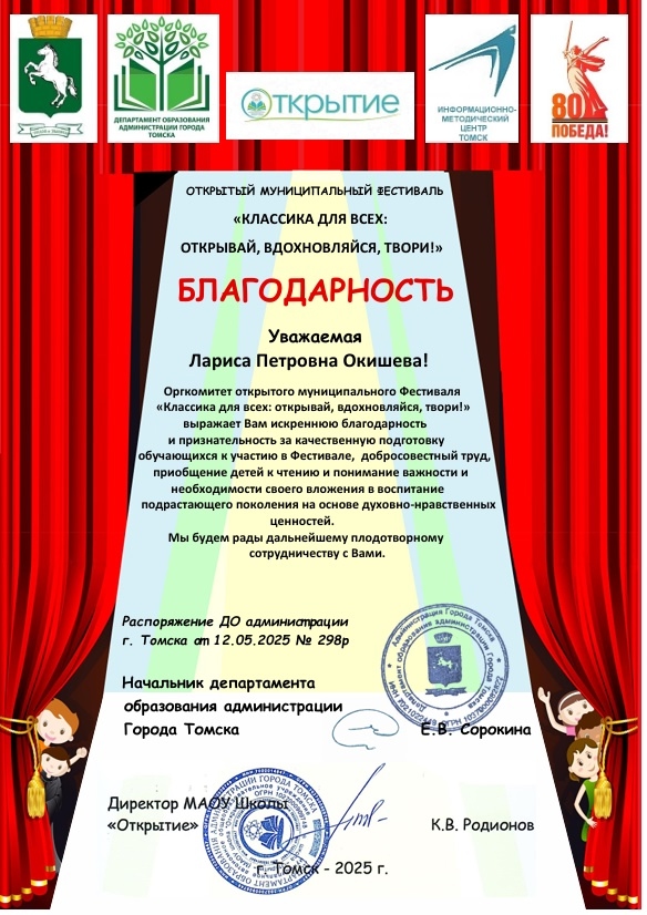 Открытый муниципальный фестиваль «Классика для всех: открывай, вдохновляйся, твори!»
